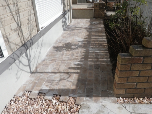 施工実績 BACK個人邸アプローチ改修個人邸アプローチ、花壇等の改修、植栽提案をさせて頂いた事例です。 敷きレンガのアプローチ 擬木丸太の階段 御影板石(さびみかげ)を並べたアプローチ 土間に石英岩ランダム貼と擬木平板をバランスよく配置しました 以前土だったリビング前の掃きだしスペースにレンガを敷きました。 門柱とカースペースの間にシンボルツリーを植えました。 門柱と伸縮門扉をシンプルモダンに仕上げました。 タイルとジョリパット塗装(櫛目仕上げ)の門柱